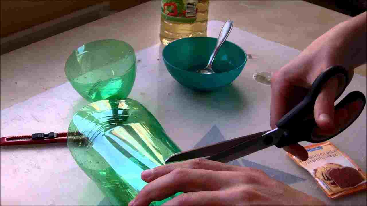 - Inserire la bocca della bottiglia sul fondo creando un imbuto.