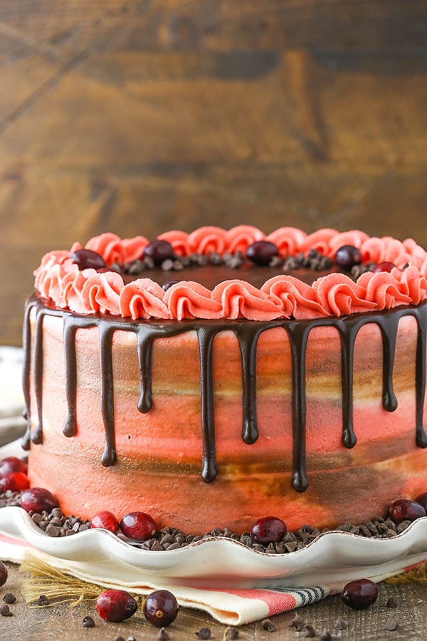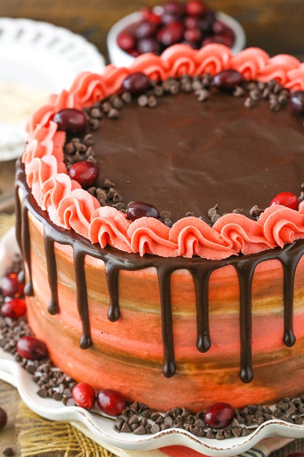 Sono un grande fan di questa torta a strati glassata al cioccolato e mirtilli rossi! Il sapore della torta è incredibile, è umida ed è PIENA di mirtilli rossi! Abbinato alla glassa al cioccolato tra gli strati, è delizioso! Un modo delizioso per gustare mirtilli rossi in questo periodo di festa e grande torta per celebrare le vacanze!