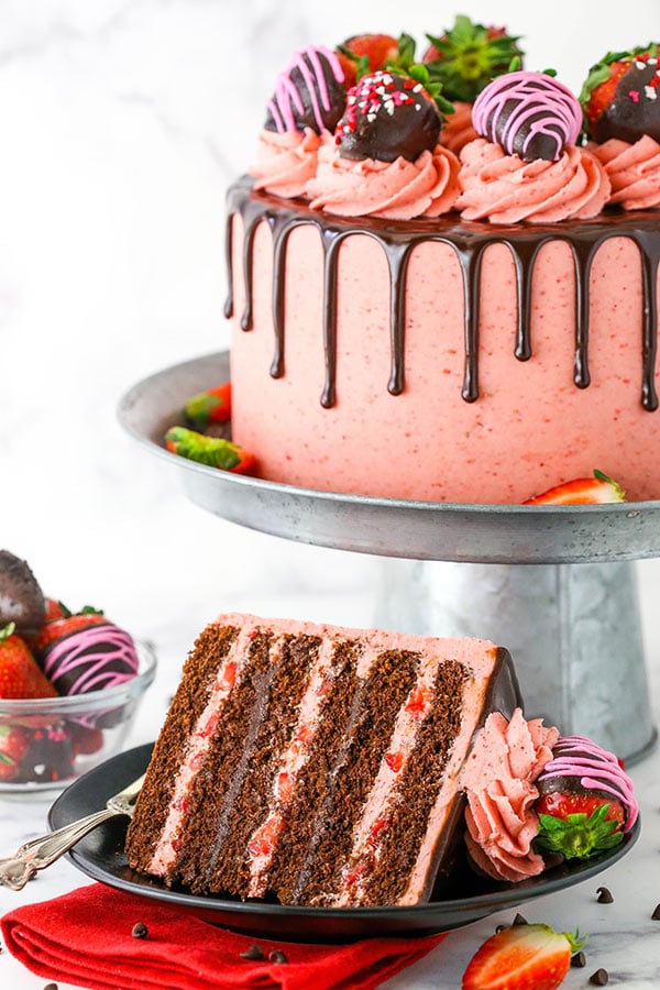 Quando penso a San Valentino, le fragole ricoperte di cioccolato sembrano essere un po’ iconiche. Possono essere romantici, ma sono anche abbastanza semplici da condividere con gli amici. Una volta trasformato in una torta, prende una nuova forma e combina due dei migliori sapori: cioccolato e fragola!