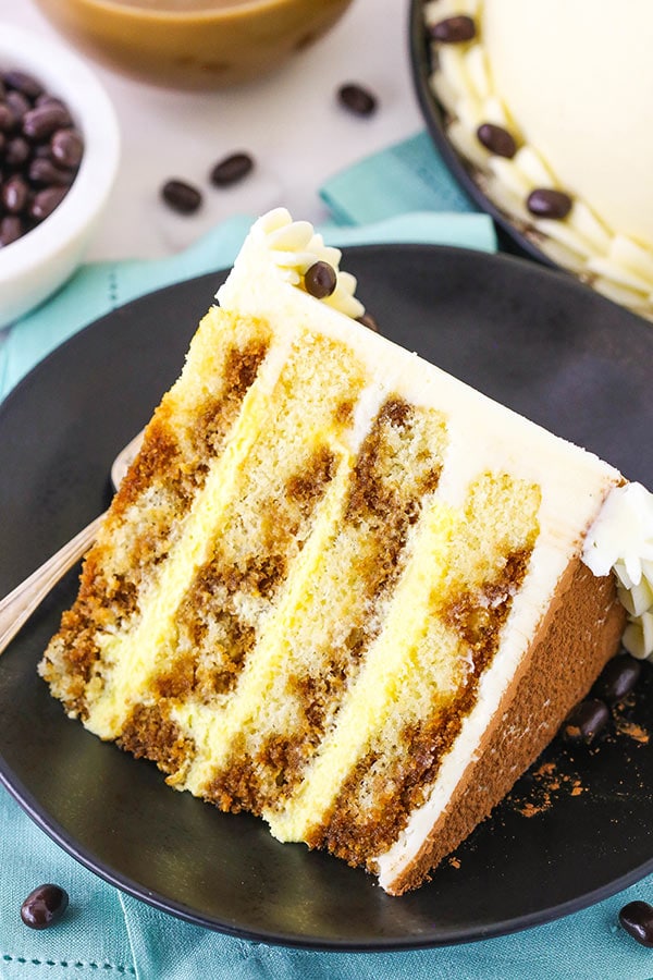 Realizzata con strati di torta alla vaniglia condita con una miscela di caffè espresso kahlua, ripiena di tiramisù e crema al burro al mascarpone. Chi immaginava che il tiramisù sotto forma di torta fosse così dannatamente gustoso!