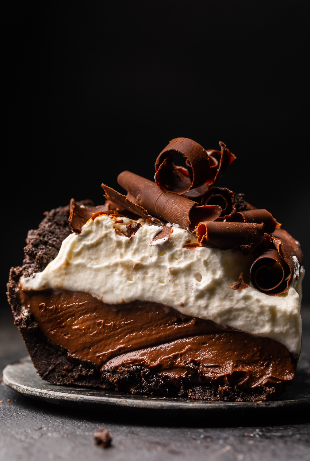 Questa torta al budino al cioccolato Espresso esagerata è un sogno per gli amanti del cioccolato che diventa realtà! Con una crosta di biscotto al cioccolato, un budino al cioccolato espresso liscio come la seta e uno strato delizioso di panna appena montata, questa ricetta è sempre un piacere per la folla! Top con riccioli di cioccolato per una presentazione da spettacolo!