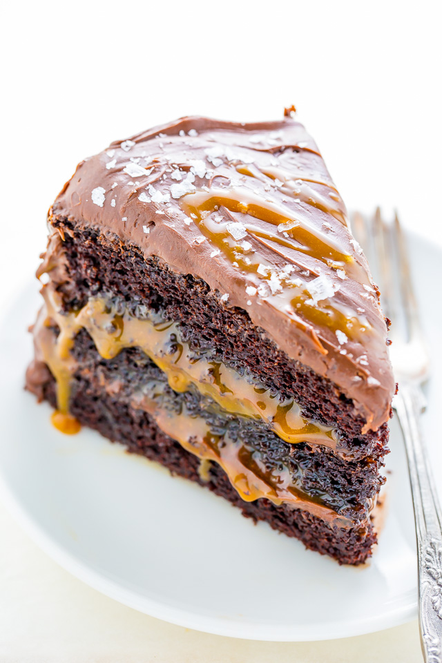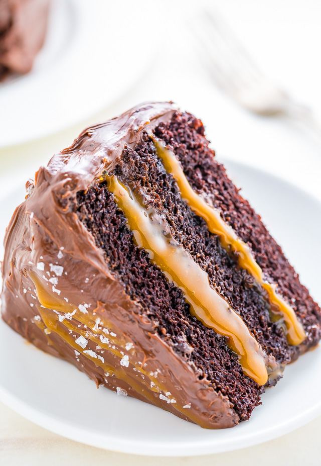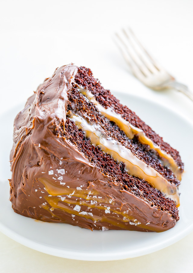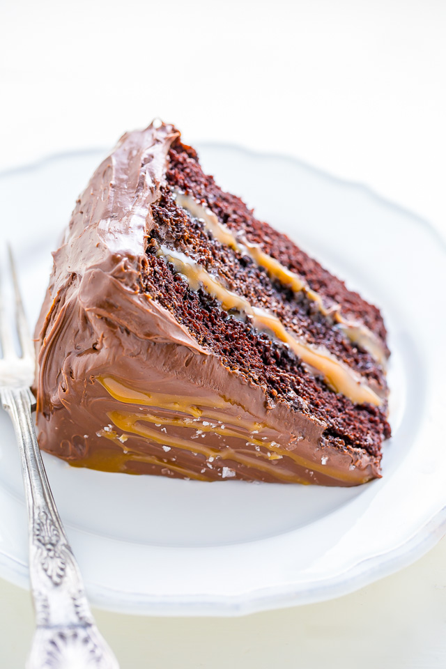 Mi preparo una torta di compleanno ogni anno e quest’anno volevo qualcosa di peccaminosamente decadente. All’inizio ho pensato che sarebbe stata la morte per torta al cioccolato (una delle mie preferite), ma poi ho iniziato a sognare qualcosa intriso di caramello salato appiccicoso…