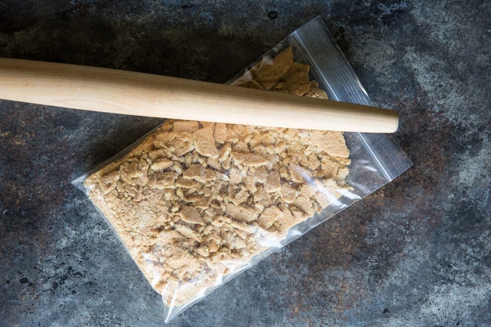 - Preriscaldare il forno a 325 gradi. In un robot da cucina, o in un sacchetto di plastica con un mattarello, schiacciare finemente i cracker. In una ciotola media, unire le briciole di cracker Graham, il burro e lo zucchero.
