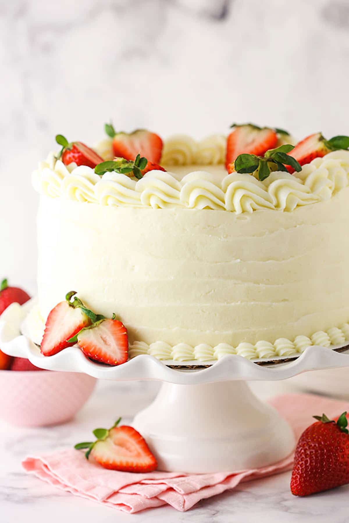 Non tutte le mie torte usano l’estratto di fragola, ma volevo che questo avesse quel forte sapore di fragola come un box misto. Utilizza ancora la riduzione di fragole, ma non è naturale al 100% come la mia torta di fragole originale, che è ottimo quando le fragole sono di stagione. Ma quando non lo sono, una torta che utilizza sapori di fragola naturali e artificiali è la strada da seguire. Si ottiene ancora quel sapore naturale, ma è migliorato dall’estratto.