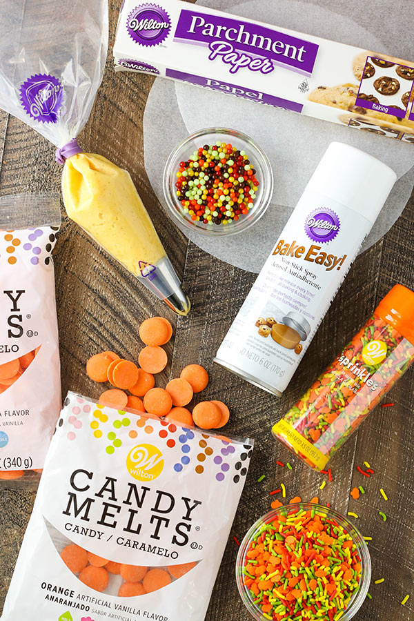 Bene, oggi useremo alcuni dei miei prodotti Wilton preferiti e alcune delle loro divertenti decorazioni autunnali. Sono perfetti da usare su questa torta alle spezie con crema di zucca al mascarpone.