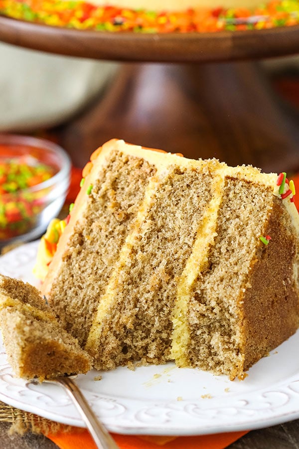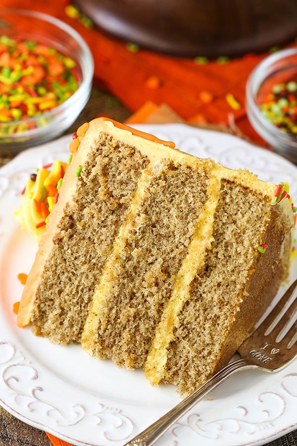 Per prima cosa, abbiamo bisogno della nostra torta alle spezie. È meravigliosamente umida, realizzata con burro e olio. Il burro non solo aggiunge umidità, ma sapore, e l’olio aggiunge ulteriore umidità che non si può ottenere con nient’altro.