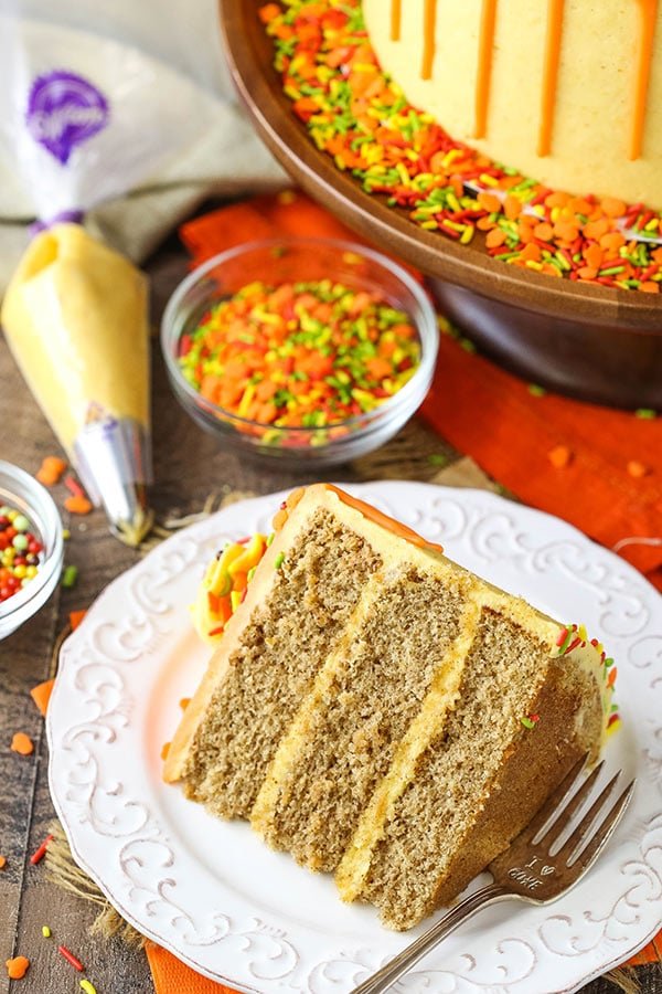 Questa torta sarà sicuramente un successo! Non solo è una bella torta da servire, è assolutamente deliziosa e piena di spezie e sapore! Le spezie della torta e la crema di zucca si abbinano perfettamente e non ho dubbi che le adorerai! Buona cottura autunnale! Non dimenticare di visitare il sito web di Wilton per ulteriori idee di progetti autunnali!