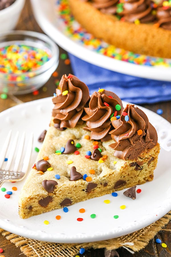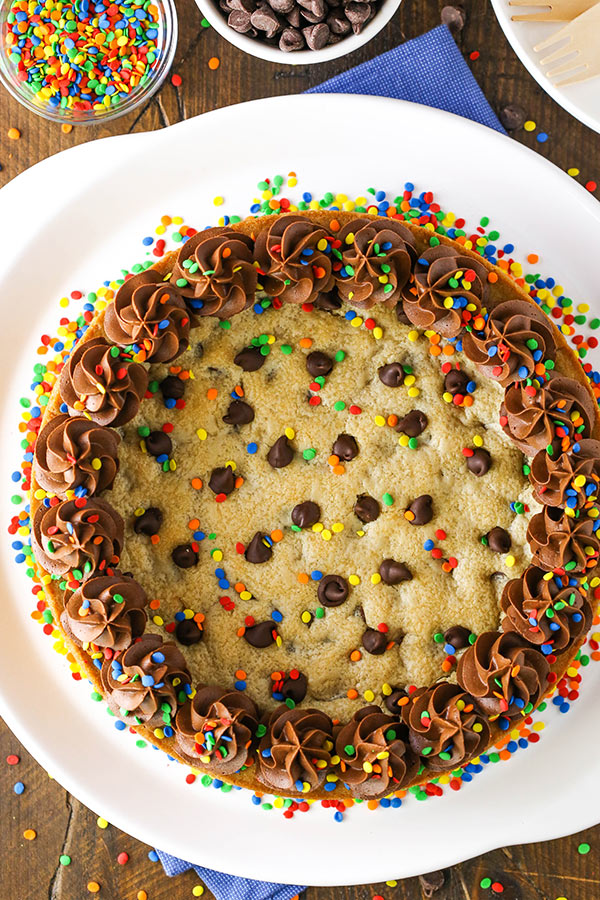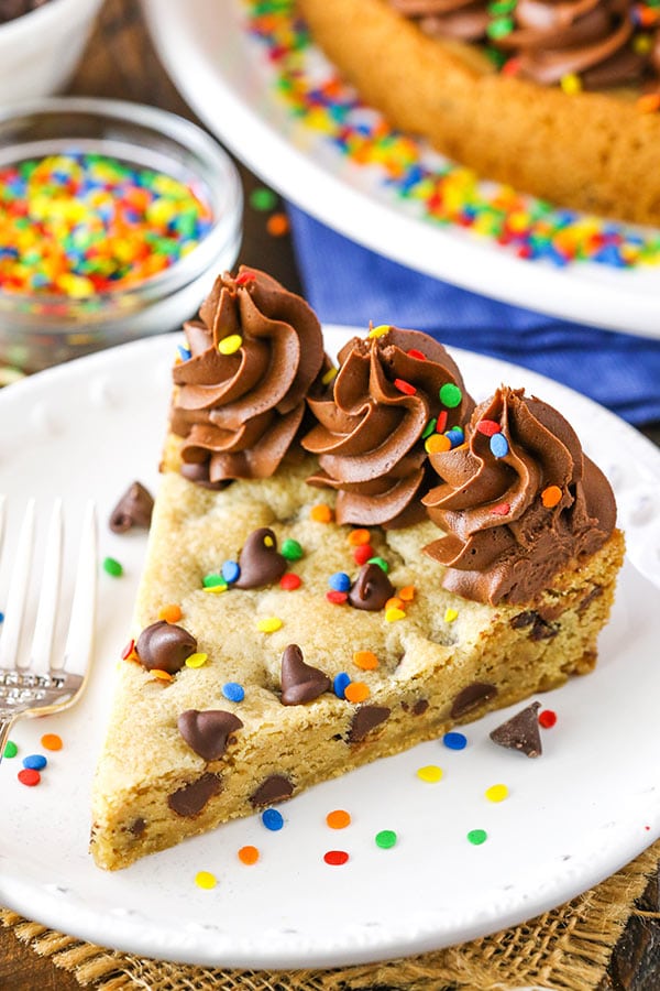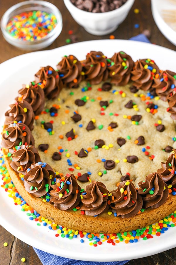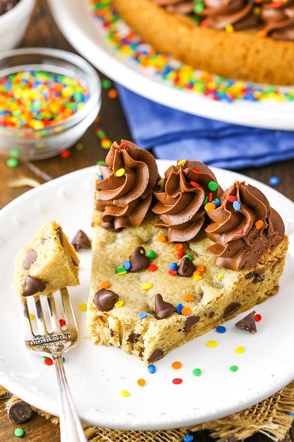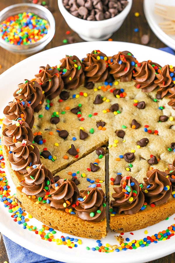 Comunque decori il tuo biscotto o qualunque sia la tua celebrazione, questa torta di biscotti sarà sicuramente un successo e migliore di qualsiasi versione acquistata in negozio. È densa, morbida, gommosa e piena di gustose gocce di cioccolato. Da molto tempo appassionato di torte di biscotti con gocce di cioccolato, ti dirò che questa è la migliore!