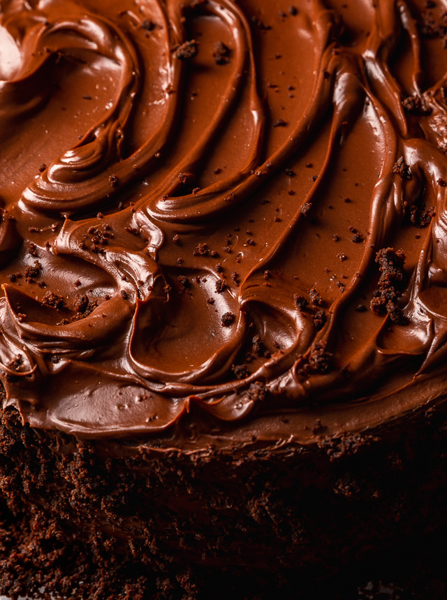 Metti uno strato di torta su un piatto da torta e spalmaci sopra circa 1/2 tazza di glassa, assicurandoti che copra completamente la superficie. Coprire con un altro strato di torta e ripetere il processo di glassa e stratificazione, terminando con l’ultimo strato di torta sopra. A questo punto, spalmerai la glassa rimanente sulla parte superiore e sui lati della torta. Mi piace usare una spatola offset per farlo!