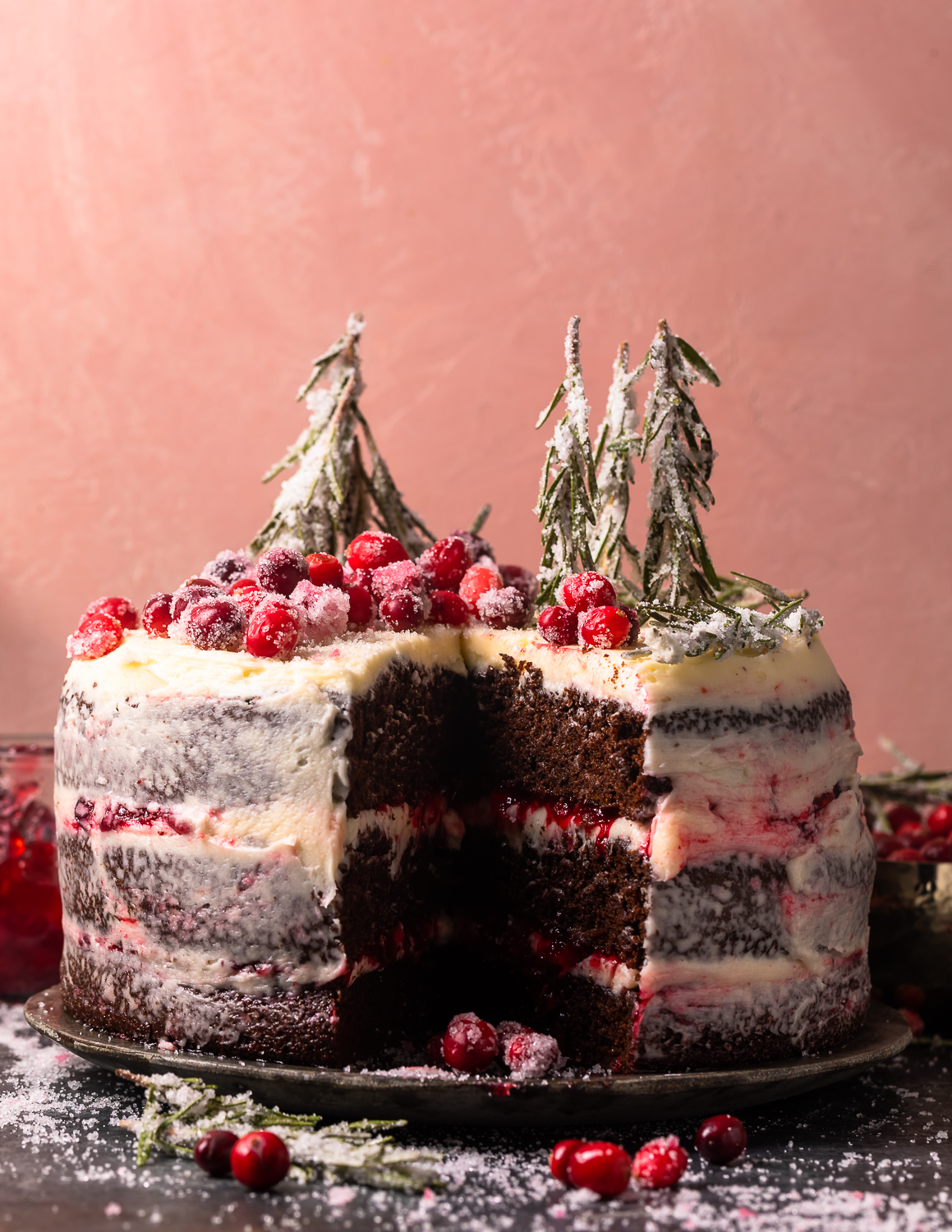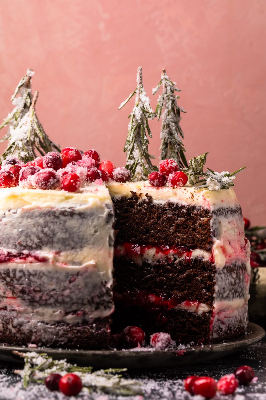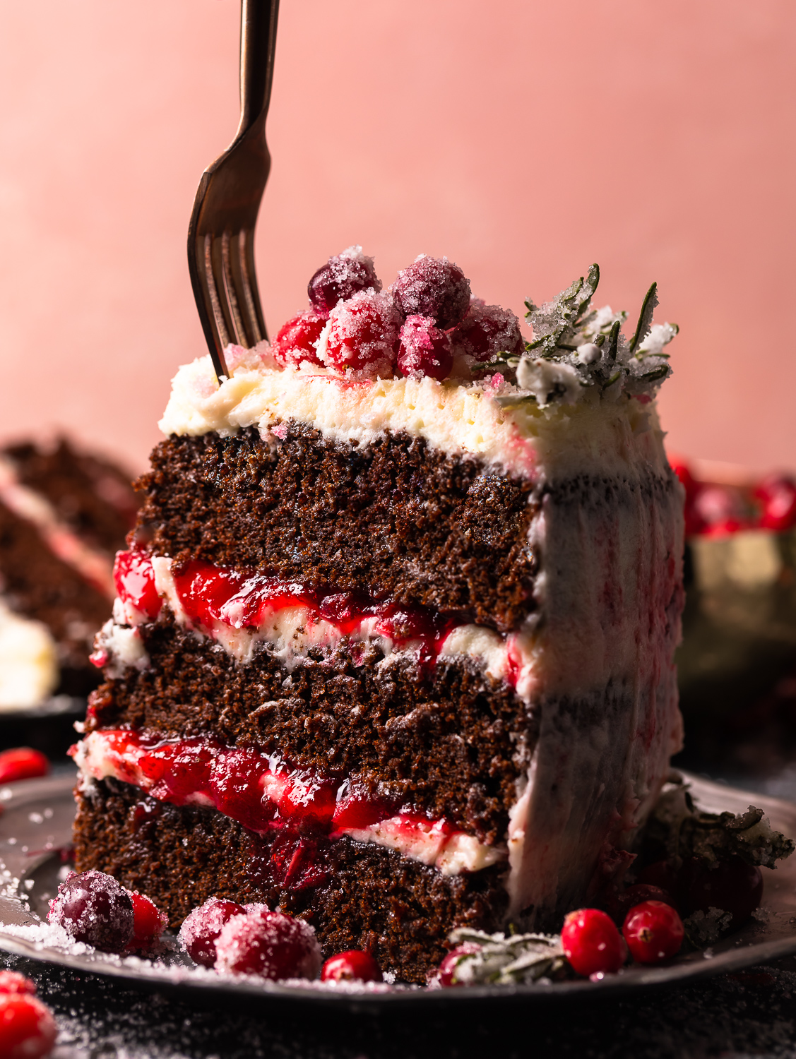 Con tre strati di torta al cioccolato espresso, glassa cremosa al burro al mascarpone e un dolce ripieno di mirtilli rossi, questa torta di Natale al cioccolato e mirtilli rossi è un vero spettacolo! Il dolce perfetto per le feste per stupire i tuoi ospiti quest’anno!