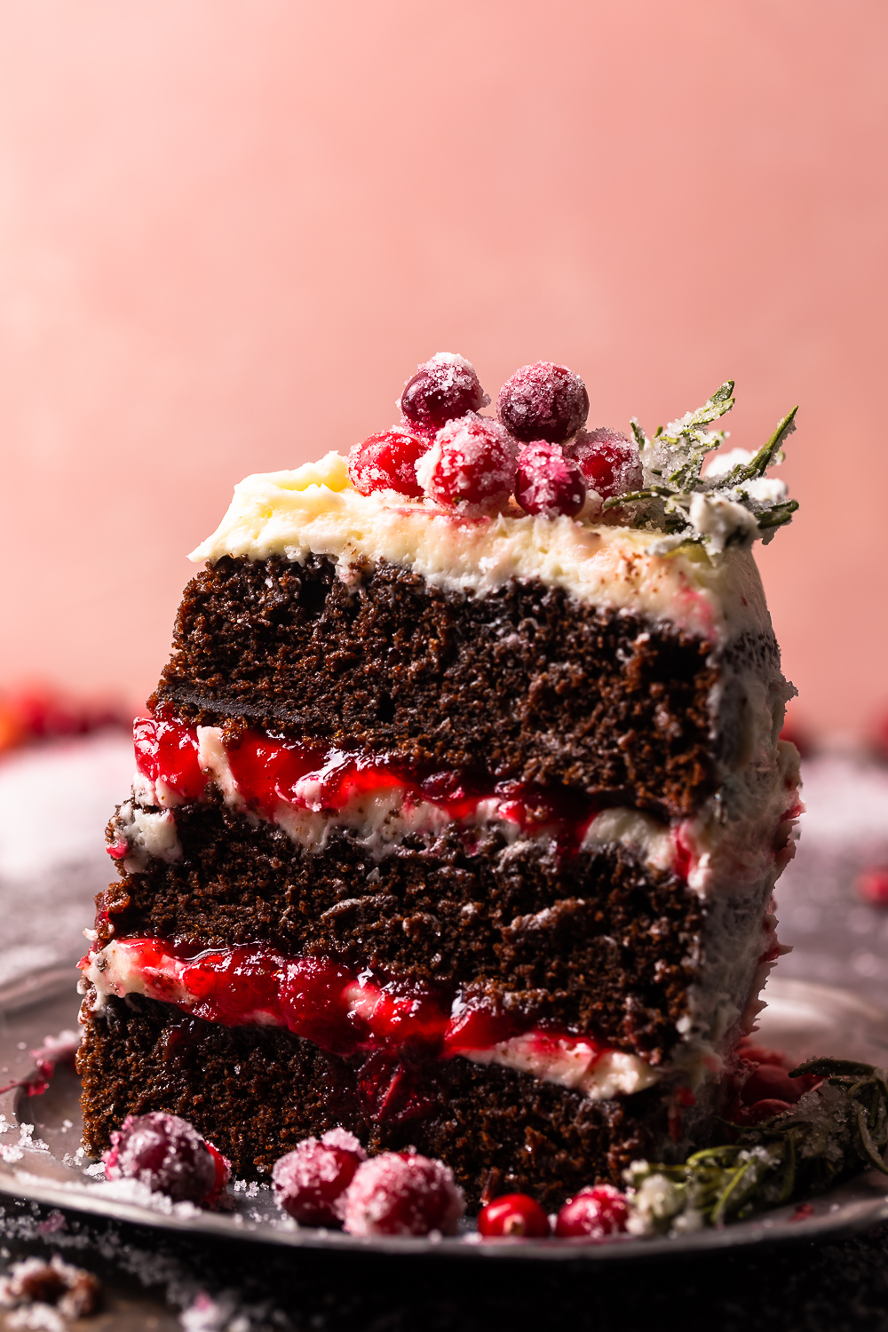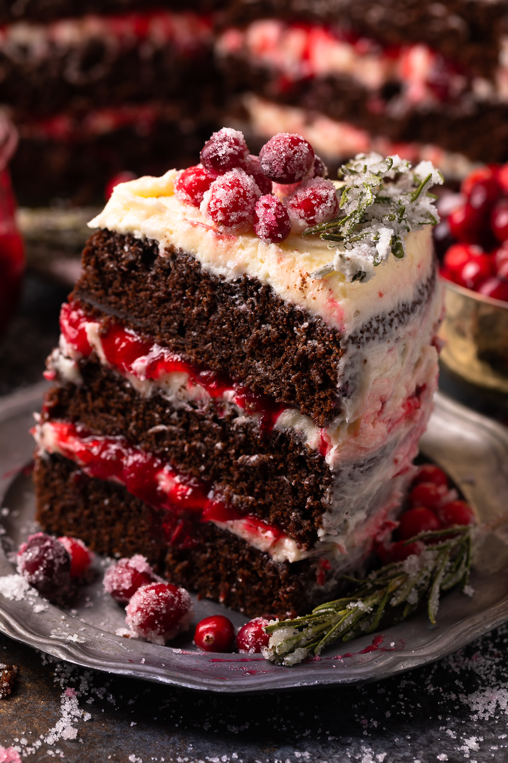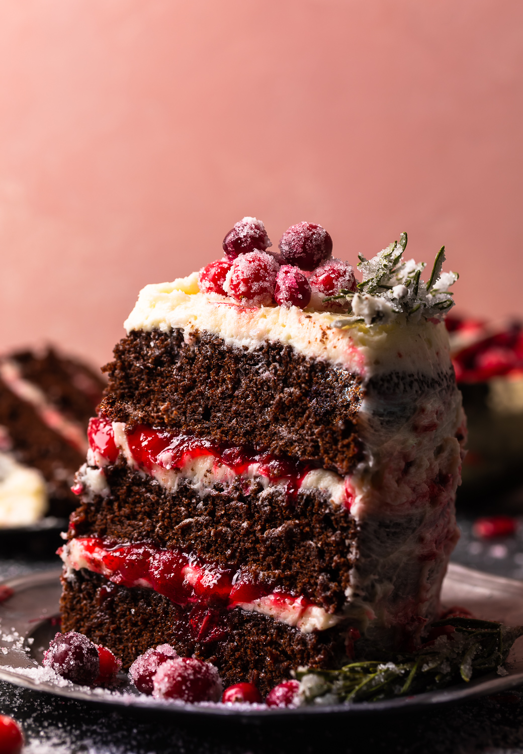 Con tre strati di torta al cioccolato espresso, glassa cremosa al burro al mascarpone e un dolce ripieno di mirtilli rossi, questa torta di Natale al cioccolato e mirtilli rossi è un vero spettacolo! Il dolce perfetto per le feste per stupire i tuoi ospiti quest’anno!
