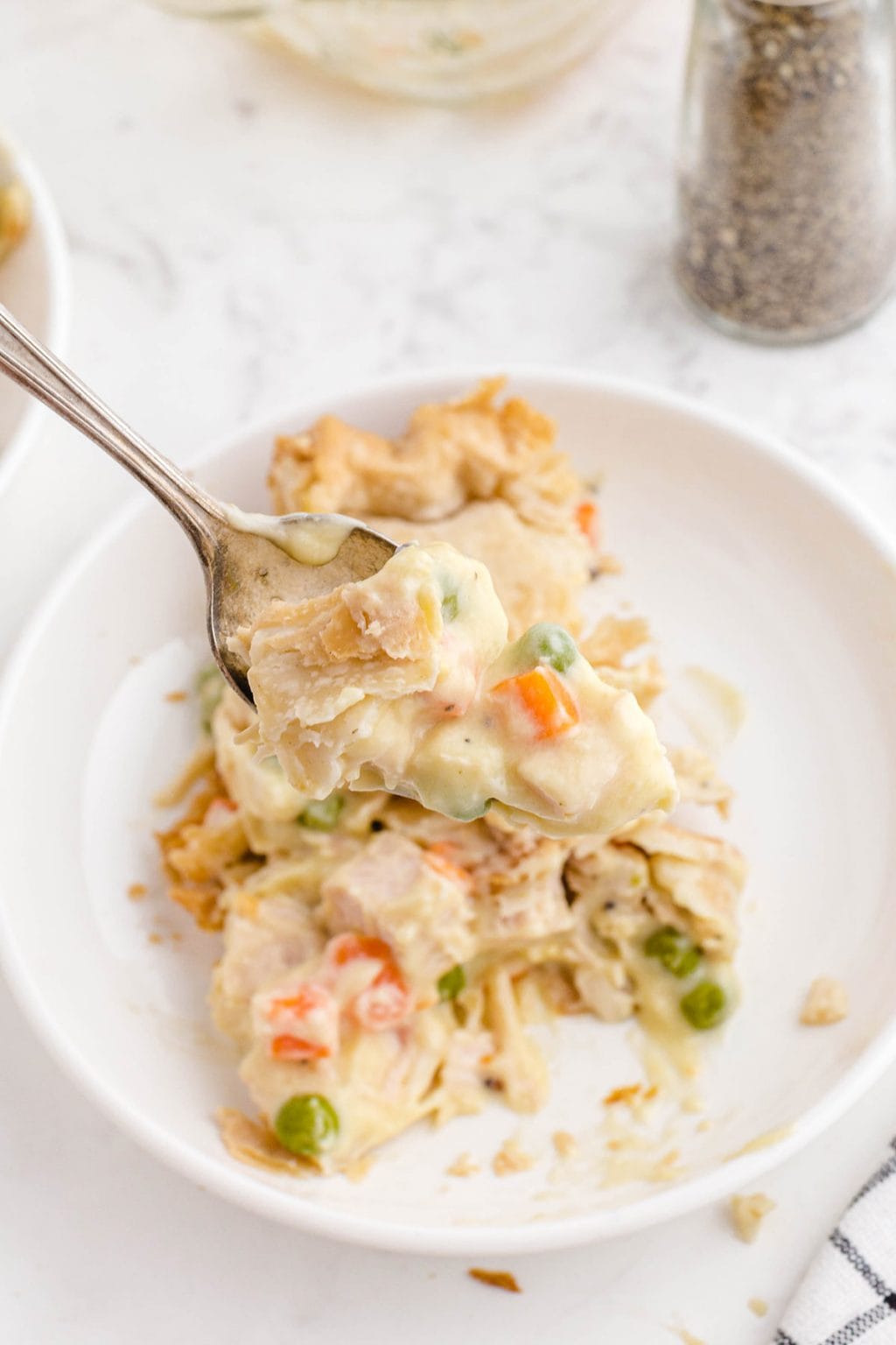 - Varia le verdure: puoi usare verdure fresche se preferisci; usiamo congelato per la facilità d’uso. Puoi usare qualsiasi mix di verdure, surgelate o fresche. Oltre a piselli e carote, sentiti libero di aggiungere sedano, cipolline, funghi affettati, patate a cubetti o il tuo ortaggio a radice preferito.