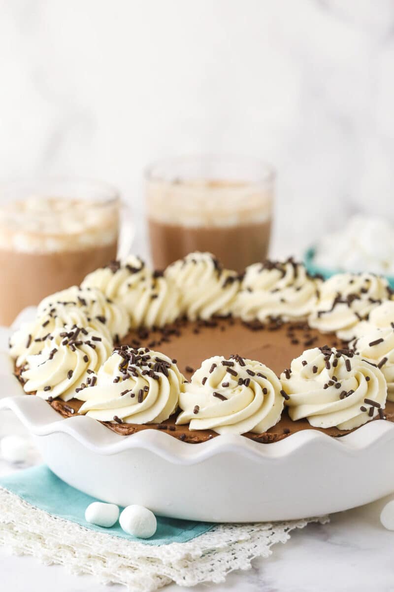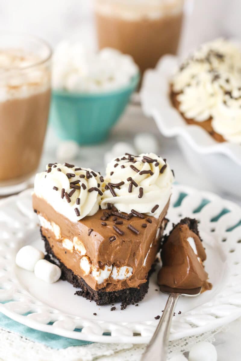 Non c’è dubbio che Baileys e cioccolato vadano insieme, ma in qualche modo non avevo pensato a come avrebbero funzionato Baileys e cioccolata calda. È una combinazione meravigliosa ed è abbinata ad alcuni gustosi marshmallow in questa fantastica torta gelato senza sfornare. Il gelato senza fare il burro non fa che aumentare il fascino di questa torta, perché è facile e veloce da preparare!