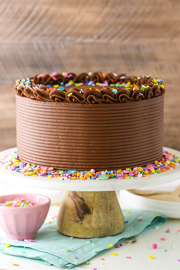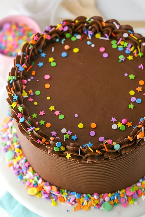 - Aggiungi qualche spruzzatina sulla parte superiore della torta. Ho usato questo mix di spruzzi. Conservare in un contenitore ermetico fino al momento di servire. La torta è migliore per 3-4 giorni.