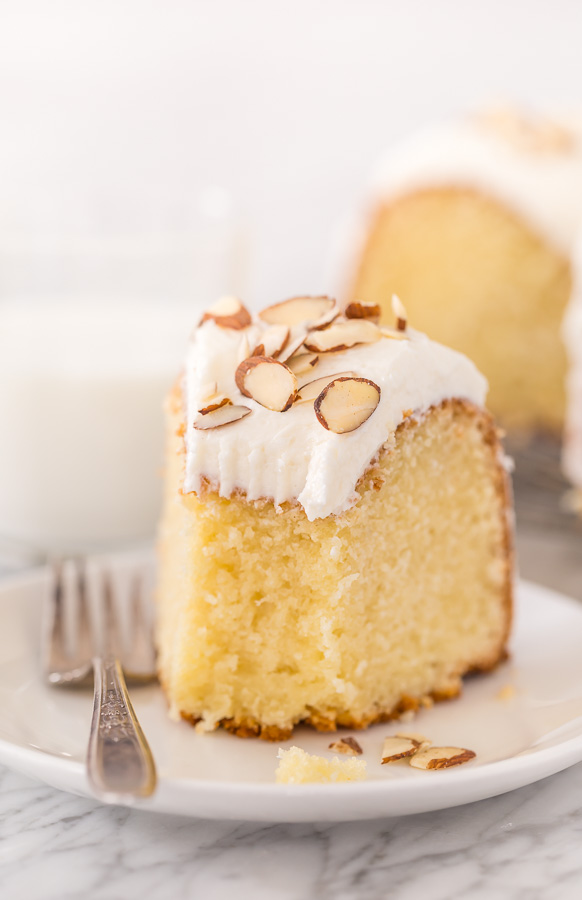 Anche se in realtà non ho mai bevuto l’amaretto, ADORO cucinarci sopra! La scorsa settimana ti ho preparato una partita di biscotti con pezzi di cioccolato e amaretto alle mandorle e questa settimana prepariamo la TORTA MARGHERITA CON MANDORLE E AMARETTO! Ed è una gradita aggiunta agli archivi delle torte. Perché questa ciambella è la definizione di perfetto! La sua mollica è densa ma umida e super burrosa. E il sapore è così ricca e mandorlata, senza essere invadente! E per finire, la glassa al formaggio cremoso è liscia come la seta e arricchita con un goccio di liquore all’amaretto e un po’ di estratto di mandorle. Quindi la torta viene semplicemente guarnita con una manciata di mandorle a lamelle ed è pronta per essere servita.