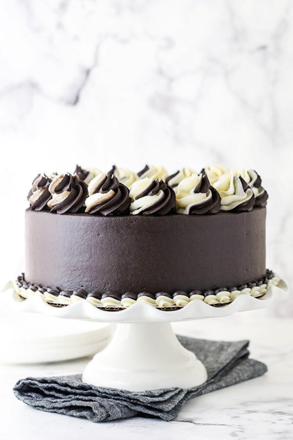 Questa versione presenta un bellissimo motivo zebrato all’interno della torta, ed è glassata con cioccolato e crema al burro alla vaniglia invece che solo cioccolato. Ora puoi scegliere una torta marmorizzata fatta in casa per abbinare il tuo umore!