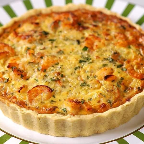 - Unite i gamberi saltati e disponeteli nello stampo con l’impasto.