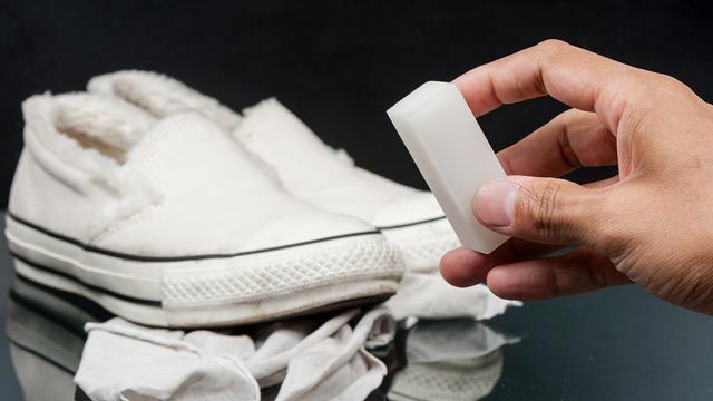 Praticamente tutti hanno un paio di sneakers con suola bianca e gomma, parte che tende ad annerire o ingiallire facilmente. Se vuoi recuperare il suo candore originario, non ti resta che passare la spugna magica attraverso tutta la gomma bianca della scarpa et voilà. Non dimenticare che, dopo averlo pulito con la gomma, dovresti asciugarli con carta da cucina.