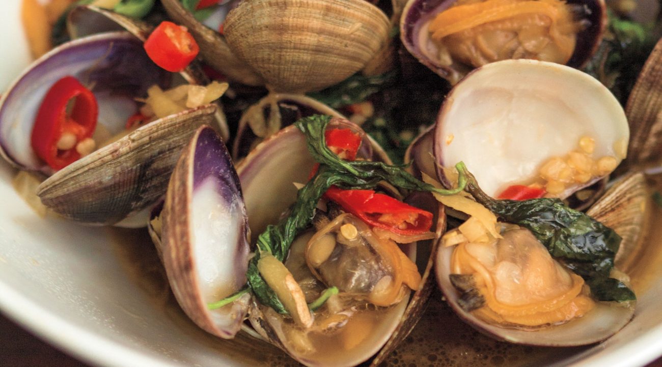 Lavate le vongole, mettetele a bagno in acqua tiepida leggermente salata e lasciatele stare così per circa 2 ore. Mondate gli scalogni e gli spicchi di aglio; mondate e lavate il peperoncino e il basilico; pelate i pomodori dopo averli immersi per qualche istante in acqua bollente, tagliateli a metà ed eliminate i semi. Spremete il lime e filtratene il succo. Tritate insieme il peperoncino, gli spicchi di aglio, gli scalogni, i pomodori e le foglie di basilico (tenetene da parte alcune per la decorazione). In una terrina stemperate il trito con l’olio, un pizzico di sale, il succo di lime. Spolverizzate con abbondante pepe macinato al momento e mescolate bene per amalgamare la salsa. Scolate le vongole, mettetele in un grande recipiente di terracotta su fuoco vivace e lasciatele aprire, travasatele in un piatto fondo di servizio, sistematele a monticello, versatevi sopra la salsa, decorate con le foglie di basilico rimaste e presentate subito in tavola.
