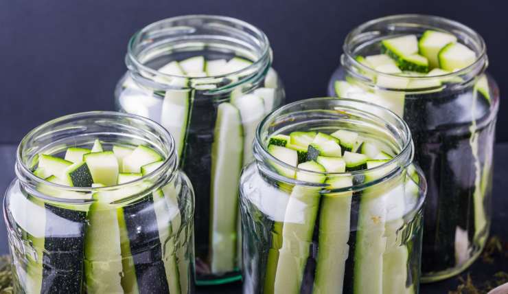 Nel frattempo, sterilizzate accuratamente i barattoli che userete per conservare le zucchine. Assicuratevi che siano perfettamente asciutti e puliti quando li riempirete.