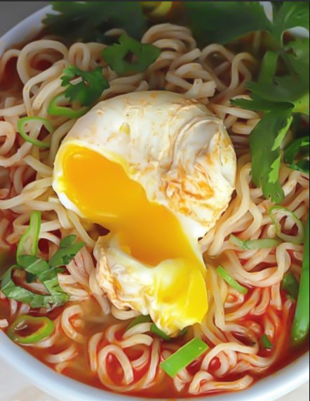 - Aggiungi gli spaghetti Ramen al brodo e fai sobbollire per altri 2-3 minuti, o fino a quando gli spaghetti si sono ammorbiditi. Togli la padella dal fuoco, versa la zuppa nelle ciotole e guarnisci con scalogno, coriandolo e uova (se lo usi). Divertiti!