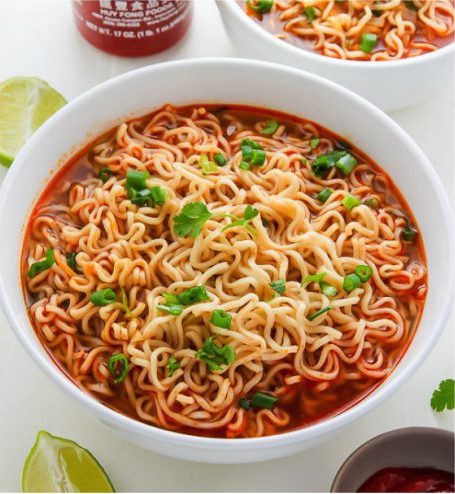 Zuppa di spaghetti Ramen con salsa piccante Sriracha in 20 minuti